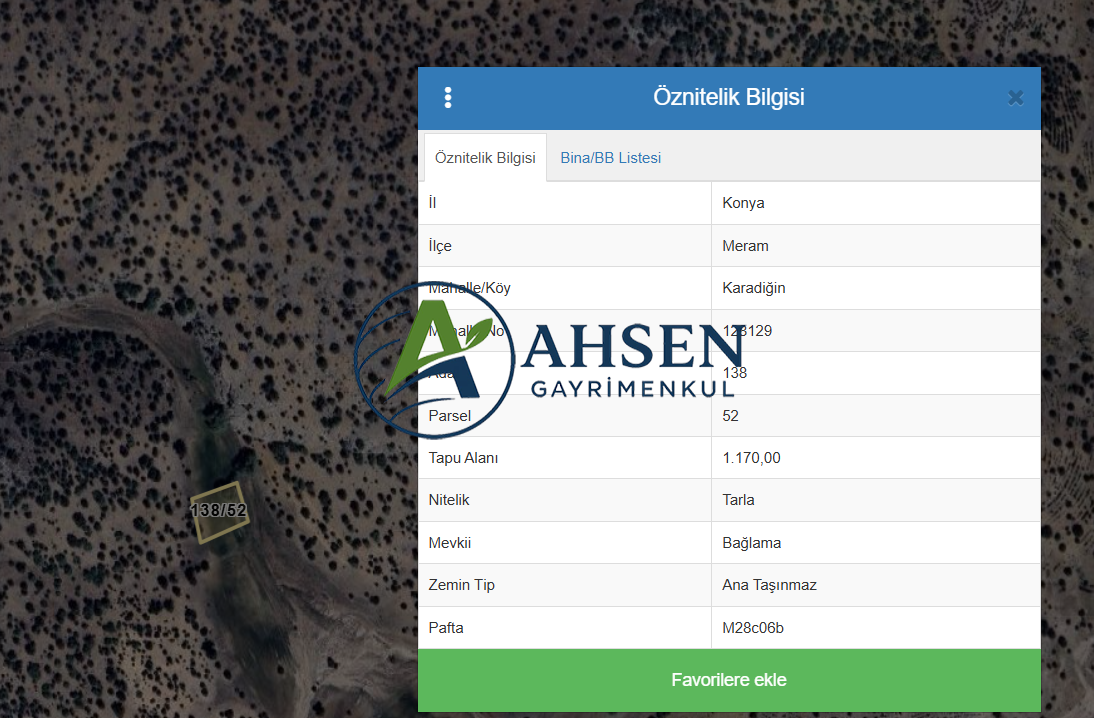 138 Ada –52 Parsel – 1.170 m² Bahçe (Karadiğin) 95.000 tl